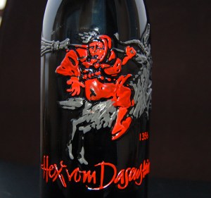 P.S. Forgive me, darlings, for judging a wine by its label. Through the magic of a Google search, I discovered the real story behind Hex vom Dasenstein. It’s my Halloween treat to you: